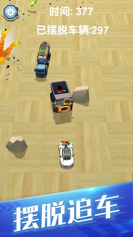 2. 路上危机四伏。警车像疯狗一样咬着你不放,前方的树木、巨石更是冷不丁给你来个“惊喜”。你的任务很明确:活下去,活得越久越好。