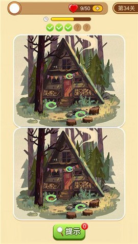 3. 在挑战过程中,游戏提供丰富的提示道具,助你迅速解决难题,轻松找到不同之处,快速通关。
