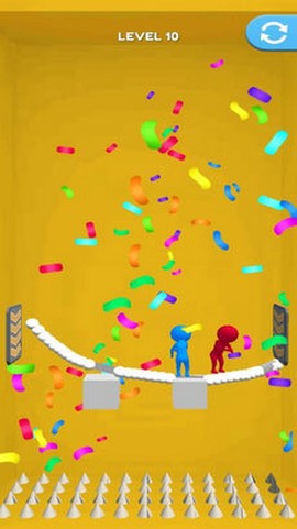 两个呆萌的橡皮人被分隔在屏幕两端,你用手指划出的每一道线条都决定着他们能否跨越障碍相拥——这就是咱们见面吧最让人上头的魔性玩法!不同于传统跑酷游戏的无脑点击,这里需要你同时操控两个角色,在机关密布的关卡里完成双线操作,像玩解压版的杂技平衡术,稍有不慎就会看到橡皮人摔成滑稽的橡皮泥团。