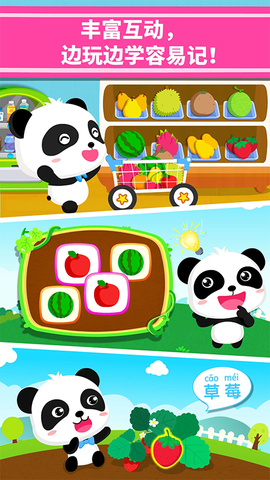 2. 知识点植入特别自然,孩子在帮熊猫厨师找草莓时,压根没意识到自己已经记住了十几种水果的英文单词。