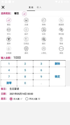 3、支出管理界面预设28个标准消费类别,支持自定义子类别,确保每笔支出都能精准归类。