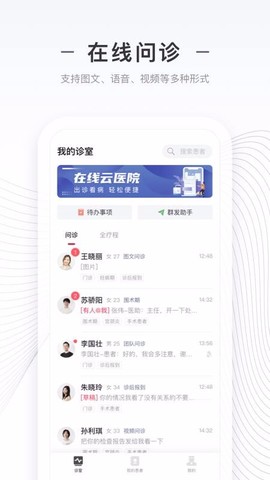 1、一目了然的问诊信息提醒,所有未读消息都会在患者头像旁边有明显提示,确保你不会错过任何重要信息。