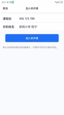 1、一键加入听评课,输入课程码和姓名即可轻松进入课堂,也允许随时取消加入,灵活自如。