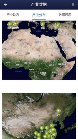 3、在“产业数据”页面中,可查看实时产业动态,亦可切换至分布图模式浏览区域产业布局。
