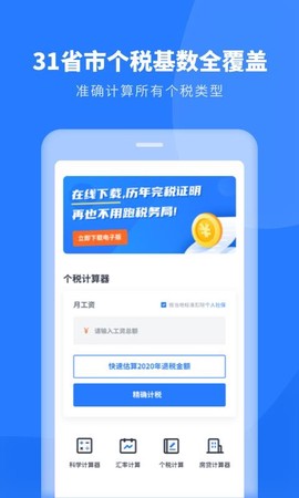 老铁们注意了!这款个人所得税管家app简直是打工人和搞钱党的必备神器!再也不用对着工资条上的税后数字一脸懵逼,它就像你口袋里的税务老司机,分分钟帮你把工资、奖金、外快甚至彩票中奖的税都算得明明白白。全国31个省市的计税标准全都能智能匹配,连最新政策都实时更新,比税务局官网还快人一步!