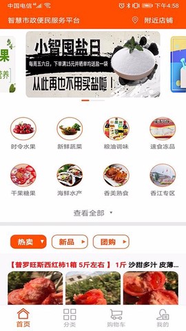 小智云城是一款基于移动互联网的便民购物平台,它允许用户通过软件便捷购买时令水果、新鲜蔬菜、粮油调味品及速食冻品等多样化商品。该平台与线下便民供应驿站相连,支持用户下单后自提货物,同时提供附近店铺检索功能,帮助用户定位较近供应点以实现就近购买,从而节省步行时间和精力。此外小智云城集成团购等促销活动,为用户提供价格优惠,有效降低日常生鲜果蔬的消费成本。
